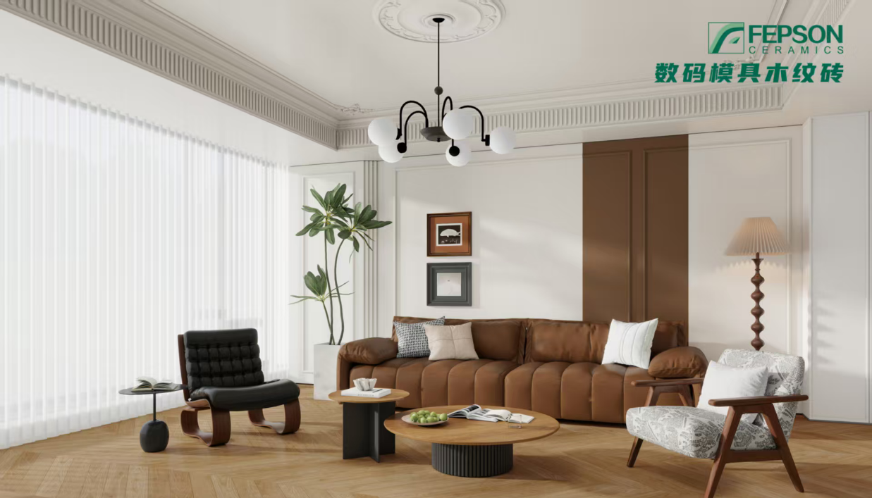 菲普森数码釉木纹砖品类全、工艺精、风格适配力强。全规格覆盖,涵盖150x900mm、200x1000mm等多种规格,包括鱼骨拼、人字拼、平面、凡尔赛、墙裙、楼梯踏步等全系列木纹砖,配套完整。花色和种类满足当下市场和消费者的应用需求和发展趋势,能精准适配法式复古、奶油风、中古风、美式、原木风、日式、极简、南洋风等流行装修风格,满足大小空间与工装家装多元场景。