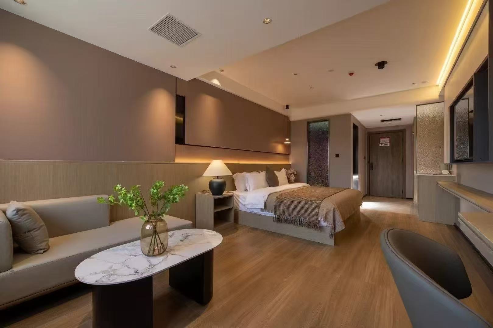 数码釉木纹砖运用了行业前沿的数码釉料技术与高清喷墨打印技术深度融合的工艺。这一技术优势让它超越了传统木纹砖的装饰局限,具备了诸多独特的特点。 从视觉效果来看,数码釉木纹砖能够精准复刻名贵木材的每一处细节。通过数字化控制釉料分布,不仅能实现木材的精准色彩,更能还原木材独特的温润光泽度、细微的导管纹理以及年轮深浅变化的立体层次感,视觉上媲美原木。而且每片砖的纹理都清晰、自然且富有变化,避免了传统印刷的重复和呆板,铺贴效果浑然天成。 触感体验方面,数码釉木纹砖表面经过特殊柔抛或模具工艺处理,提供从柔滑到带有细微木材肌理感的多种触感选择,光脚踩踏温润舒适,极大提升了家居体验。 在性能上,数码釉木纹砖更是超越了实木。它稳定耐用,无惧潮湿、干燥、地暖环境,不变形、不开裂、不虫蛀;易于养护,表面致密,抗污性强,日常清洁维护非常简单;安全环保,零甲醛,防火阻燃,适用于所有家居及商业空间;耐磨耐刮,表面硬度高,能承受家具移动和日常使用带来的磨损。